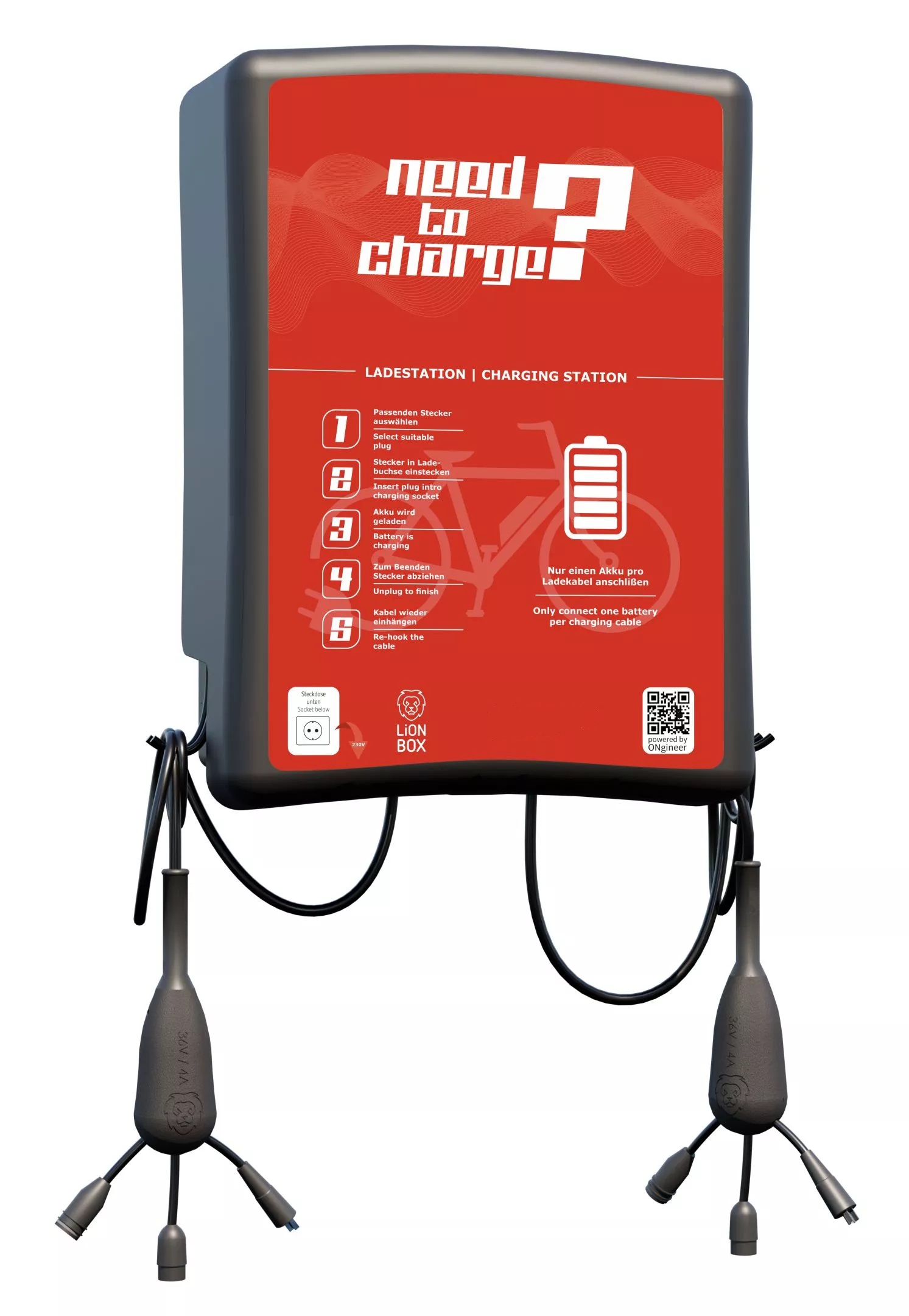 BOX z 2 kablami do rowerów z systemem ładowania 36V (4A).