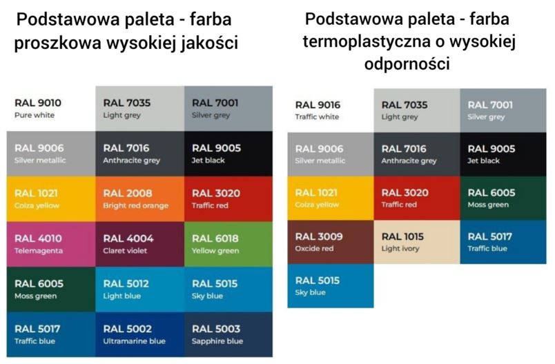 stal nierdzewna (AISI 304) malowana proszkowo na wybrany RAL