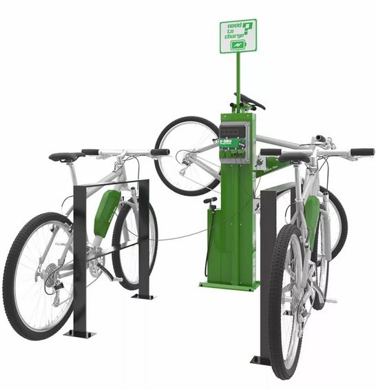 Z tyłu stacji znajduje się moduł z 4 x gniazdami do ładowania rowerów