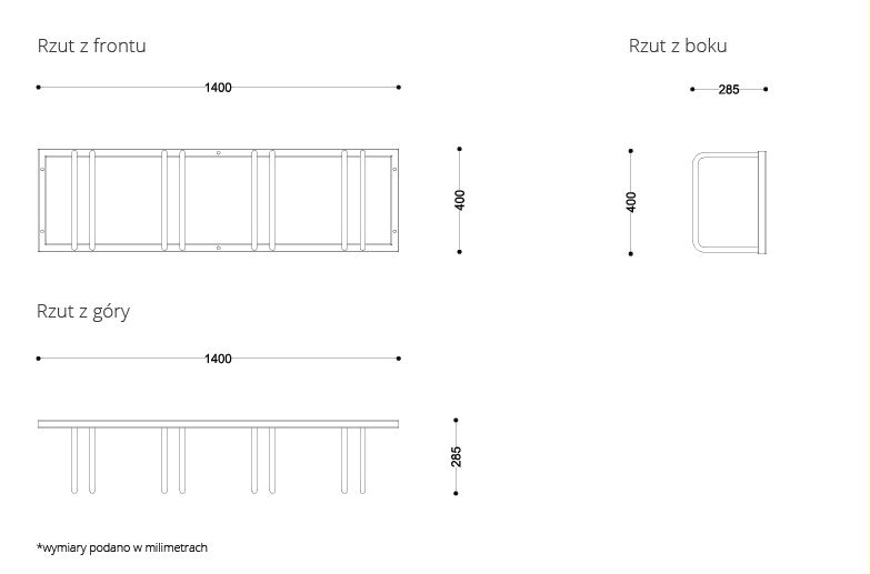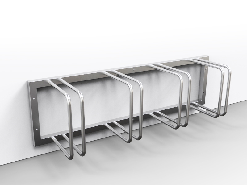 Stojak montowany do ściany. Stojak dedykowany jest do wszystkich budynków użyteczności publicznej, przestrzeni handlowych i biurowych.