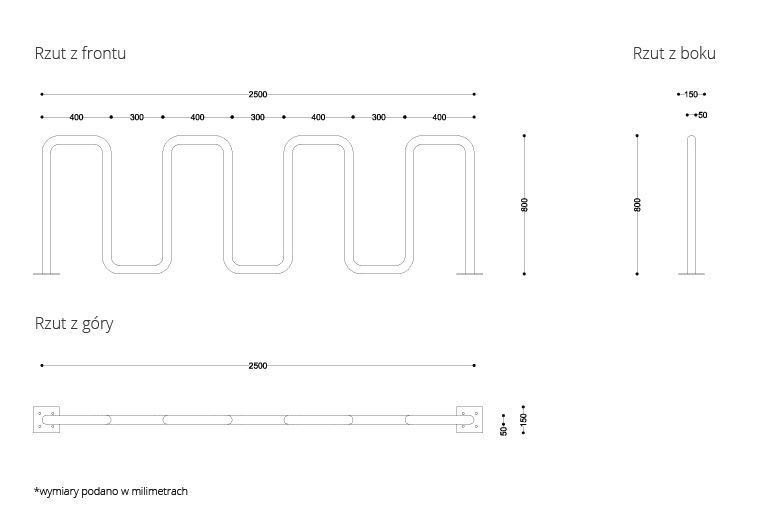 Stojak został zaprojektowany tak, aby zagwarantować możliwość szybkiego i bezpiecznego przypięcia roweru.