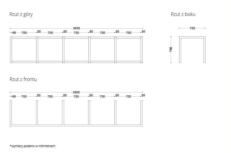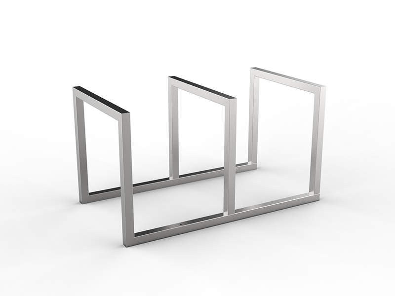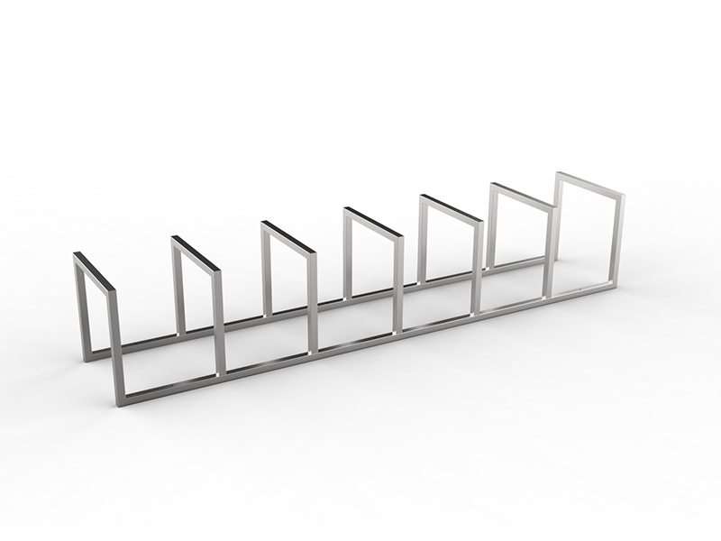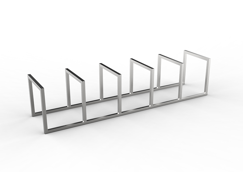 Stojak o prostej formie i nowoczesnym designie. Produkt świetnie sprawdzi się przy ograniczonej przestrzeni, z racji niewielkiej szerokości użytkowej stojaka w stosunku do dużej ilości stanowisk.